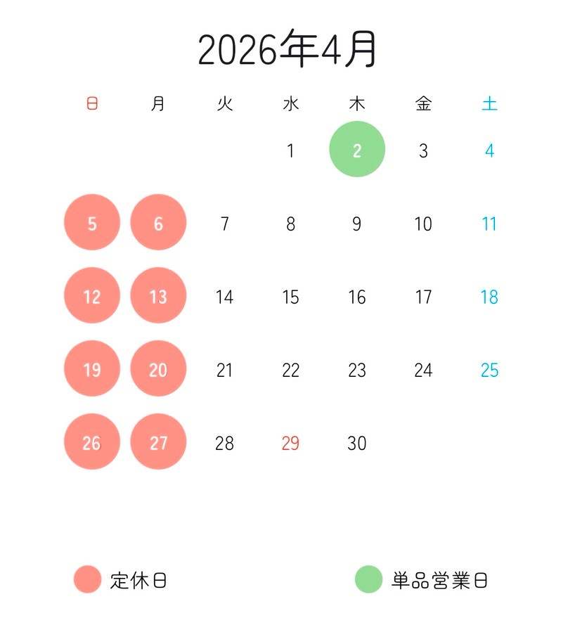 【4月21日以降のお休み】27日 日曜日